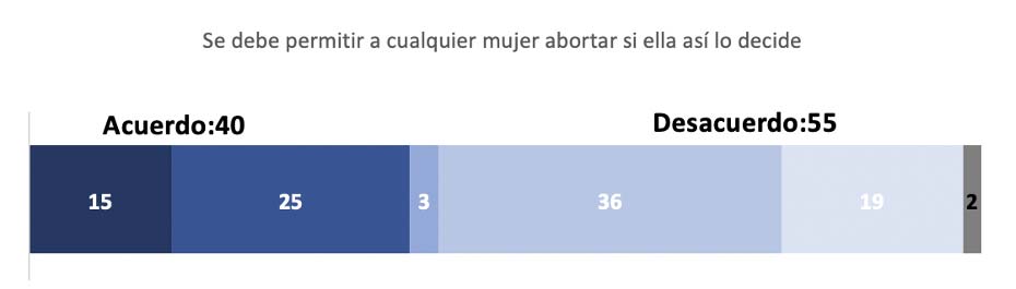 En general, la encuesta muestra que en situaciones extremas y en las que la decisión está fuera de las manos de la persona gestante, hay una mayor aprobación de la despenalización del aborto. En otras palabras, se reporta mayor aprobación al aborto en situaciones como embarazos por violación y riesgos a la vida de la persona gestante. Cuando la decisión de abortar se debe únicamente a la decisión de la persona embarazada o el embarazo es producto de una falla en el método anticonceptivo, la mayor parte de la población está en contra.