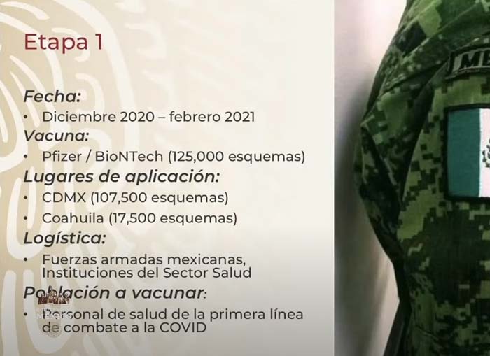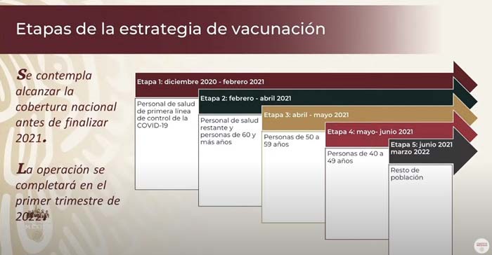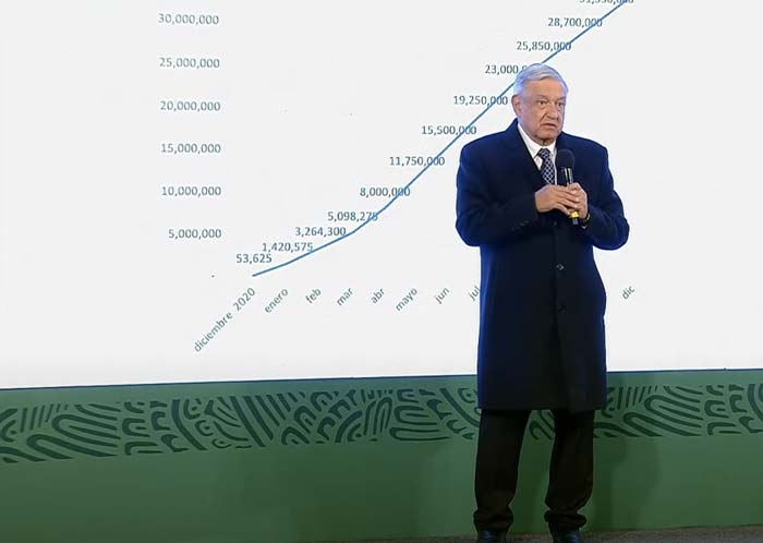 El 14 de febrero, el presidente anunció la meta de aplicar por lo menos primeras dosis a la totalidad de la población con 60 o más años de edad (15 717 000 personas) para mediados de abril.