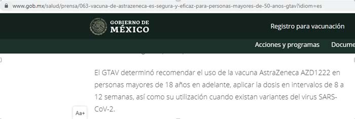 Avance de la vacunación contra covid-19 en México