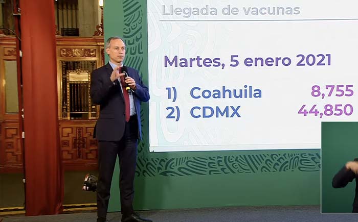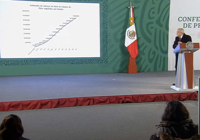 Desde el 24 de diciembre, el subsecretario López-Gatell muestra cada tarde en su conferencia de prensa una gráfica con las cantidades de dosis aplicadas diariamente. En la mayoría de las fechas se han aplicado menos de 50,000 dosis. En nueve días se han aplicado más de 100 000; destaca el día 18 de febrero, en el que se aplicaron 326 000 dosis.