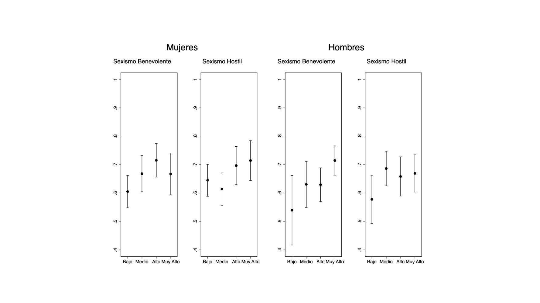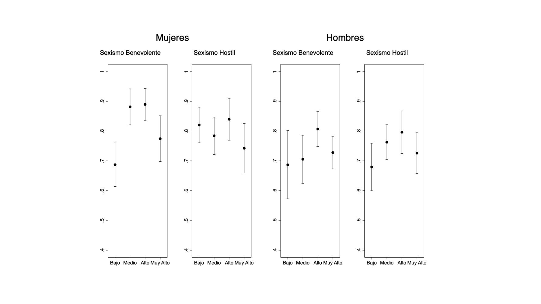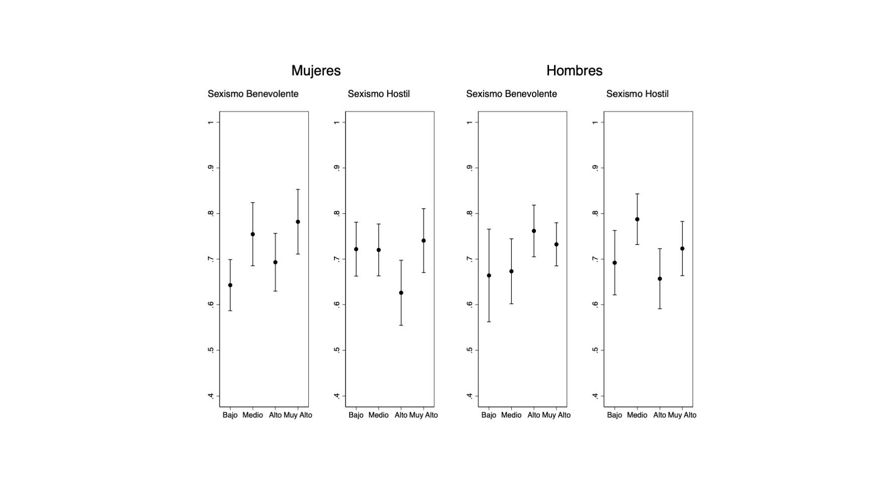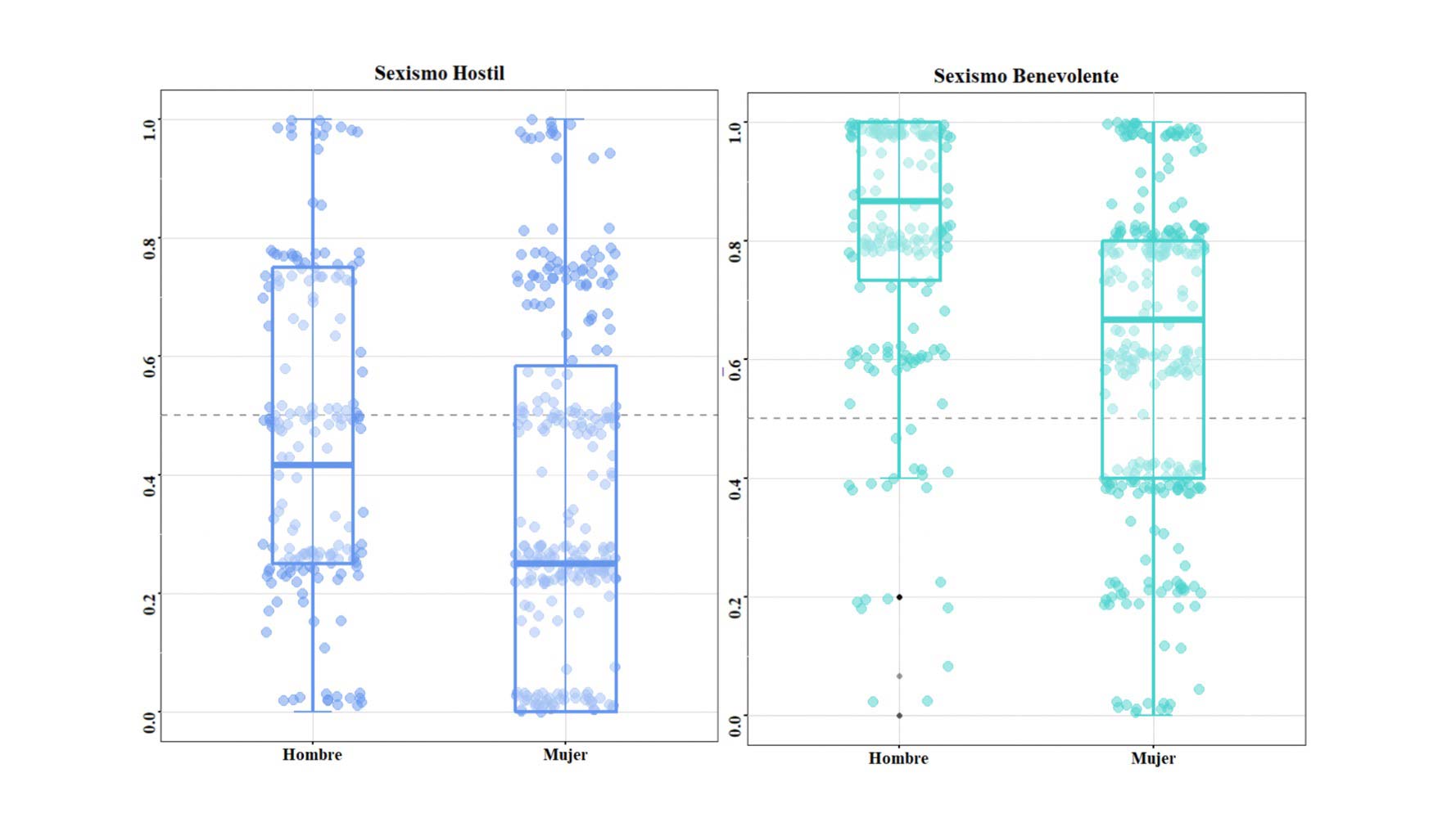 6 Sexismo hostil: 0.17 (25 %), 0.25 (50 %) y 0.67 (75 %). Sexismo benevolente: 0.53 (25 %), 0.8 (50 %) y 1.0 (75 %).