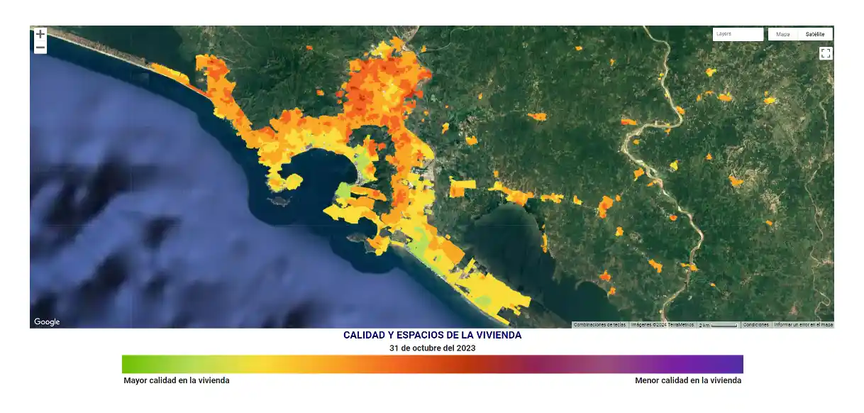 Figura 2 . Mapa de visualización de la calidad y espacios de la vivienda (a) el 29 de septiembre de 2023 y (b) el 31 de octubre del 2023 en Acapulco