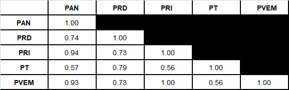 Esta tabla, como la gráfica de los puntos, también comprueba que el PRI y el PVEM funcionan como un solo bloque.