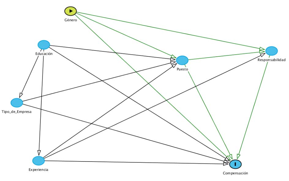 A su vez, se considera que Género impacta Puesto y Responsabilidad. Dadas las relaciones planteadas, se debe controlar por todos los factores.