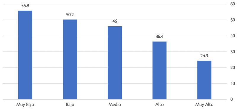 Gráfica 1. Votación promedio por la coalición JHH por nivel de bienestar de la sección (%)