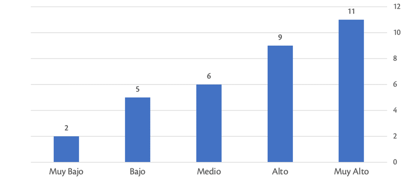 Para dilucidar la relación entre votación y “clase”, clasificamos las secciones electorales de acuerdo a una medición agregada del nivel de bienestar que prevalece en la sección. Estimar un nivel de ingreso promedio en una sección electoral no es posible con base en los datos censales. Por eso, generalmente se recurre a algún tipo de medida que considere un conjunto de variables para determinar un indicador “promedio” o común a la sección electoral. Con base en los datos del Censo 2010 —los datos agregados por sección electoral del Censo 2020 aún no están disponibles—, empatados a nivel sección electoral, estimamos cinco niveles que llamamos de bienestar en la sección.