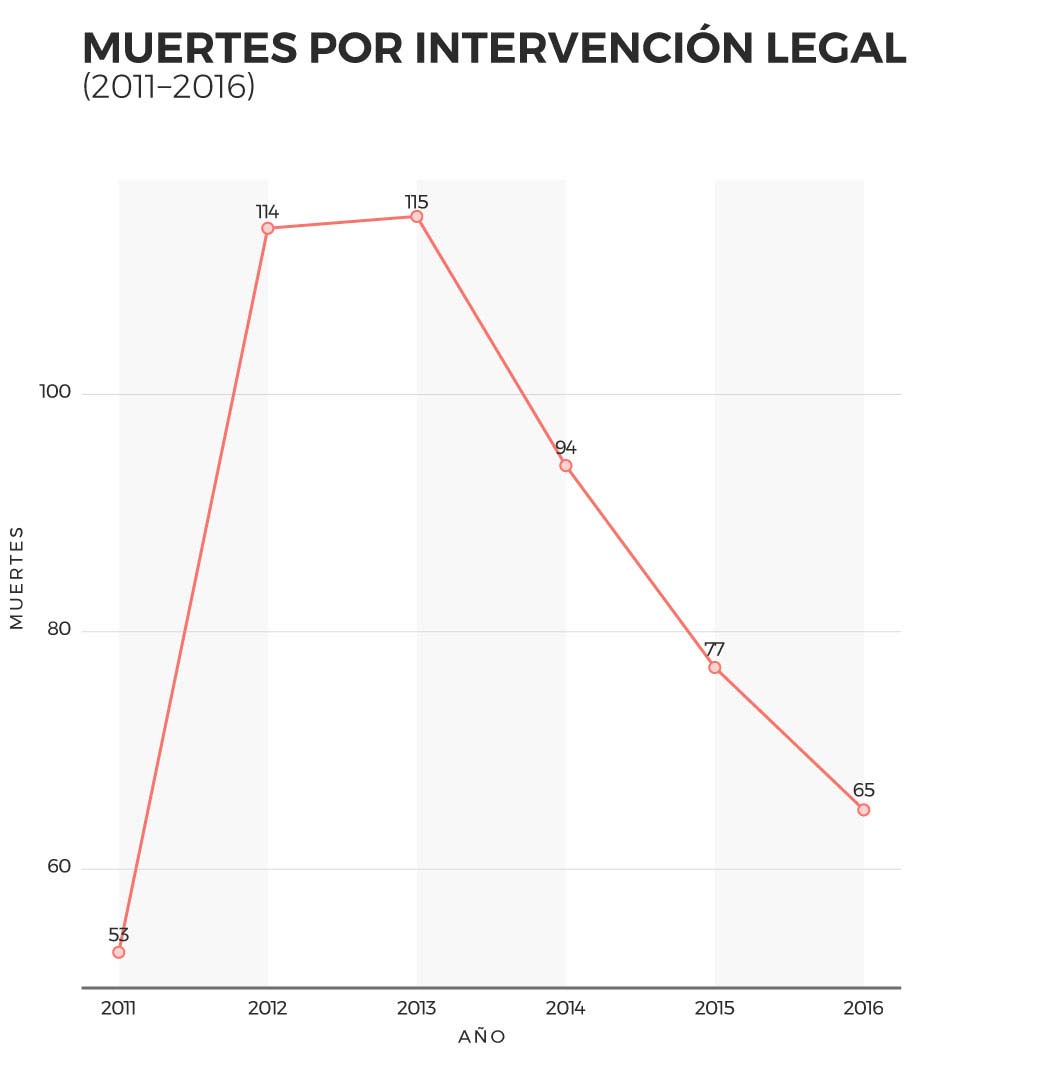 La única fuente disponible hoy para conocer el número de personas que mueren a manos de autoridades es el SINAIS en la causa de muerte Y35. La base de datos sobre homicidios por presunta rivalidad delincuencial se dejó de publicar en 2011, y en ella se consignaban muertos, heridos y detenidos por enfrentamientos entre autoridades y presuntos miembros de la delincuencia organizada; como supimos gracias a la publicación de una versión mucho más detallada de esta base por parte del CIDE y su Programa de Política de Drogas. A su vez, SEDENA decidió dejar de publicar información sobre víctimas de homicidio en enfrentamientos con sus miembros en 2014.