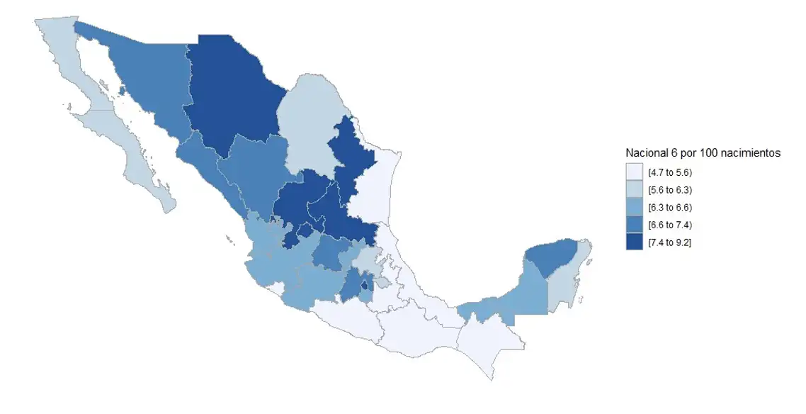 4 Suarez-Idueta, L.; Robespierre, P., y Blencowe, H. “National data linkage assessment of live births and deaths in Mexico: Estimating under- five mortality rate ratios for vulnerable newborns and trends from 2008 to 2019”, Paediatr Perinat Epidemiol 2023, 37, pp. 266–275.