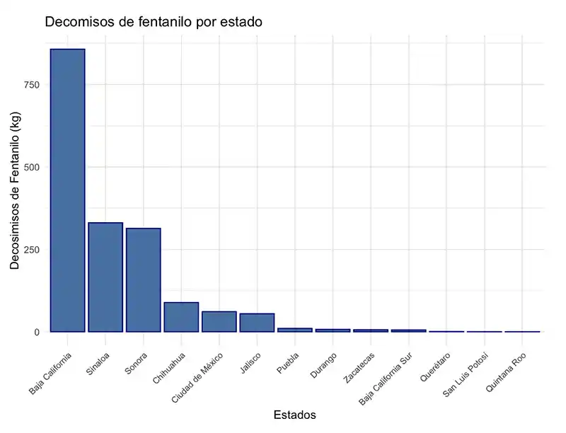 Es difícil —por no decir imposible— desacreditar la postura del gobierno actual con los datos existentes. Después de todo, no se reconoce, de momento, la producción de fentanilo en el país. Pero aún con ello, podemos dar matices adicionales a la penetración del fentanilo en México: un matiz geográfico además del matiz temporal que ya hemos brindado.