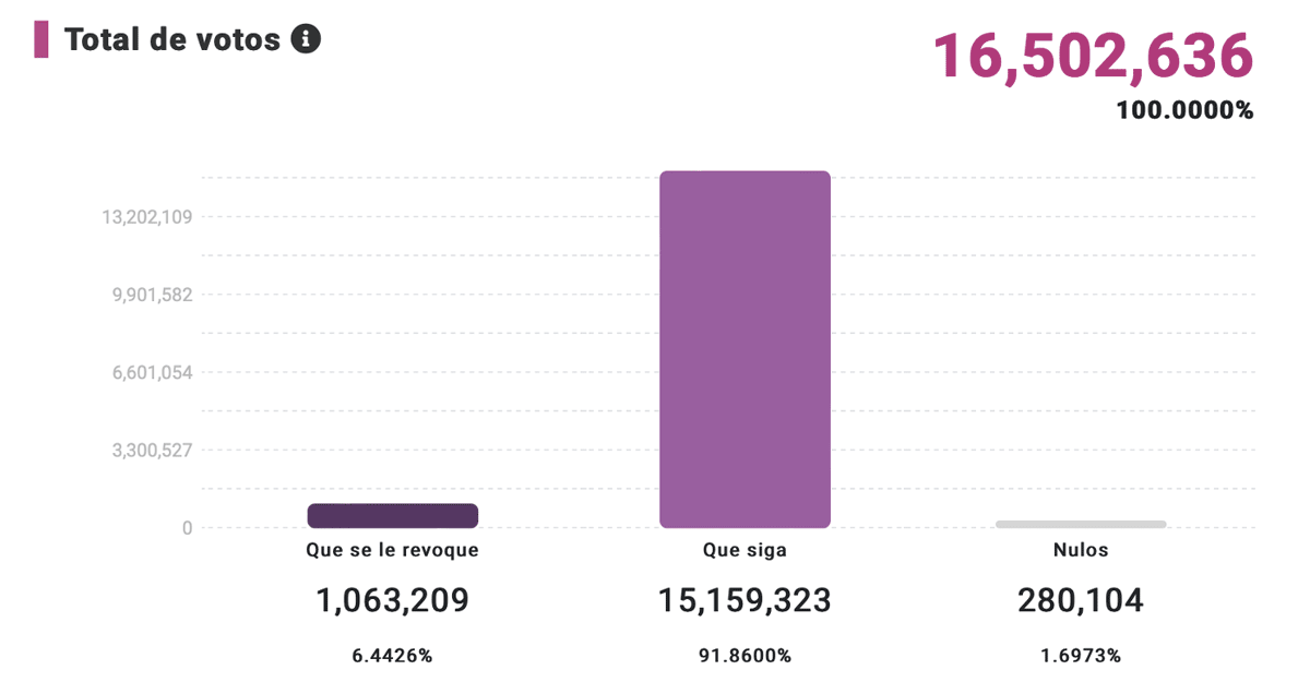 • Un total de 1 063 209 votos a favor de la revocación (6.44 %)